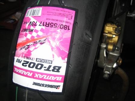 タイヤ:フロント BRIDGESTONE BT002(ミディアム) ユーズド 1.9キロ、