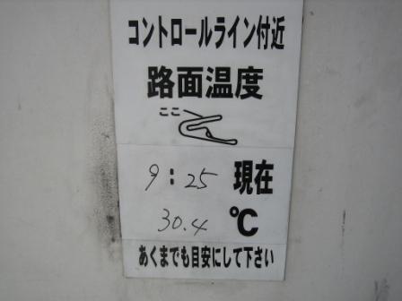 | 9:55 コンディション 気温25.6℃ 路面温度30.4℃ 何もしないでいると、風がとても心地の良い五月晴れの天候です。 |