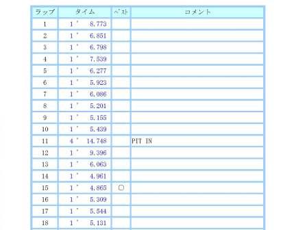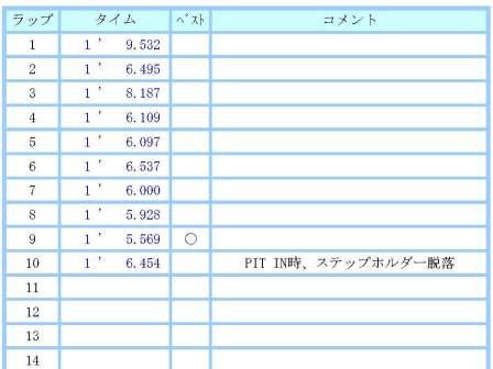 1走行目は10:00からでした。 先のレース後の課題として、自分はスロースタータなので5〜6周目くらいまでにタイムを出す。 5〜6周走ったら、次はコースの区間を決めて重点的に走り込む。 結局、練習だと1周全部集中力が続きません。 どこかのスティントを決めて重点的に練習をしてみようと言う試みです。 今日は1コーナーからS字そして、1ヘアピンの入口までにしてみました。 まず、コースインして5〜6周目くらいまでにタイムを上げる課題ですが、ダメ。 なんか非常にしっくりしません。 昨日までの雨のせいか、グリップ感がありません。 (レベルは低いですが・・・) 他に走っている連中もそれは言っていました。 7周目からは1コーナーから1ヘアピンまでを集中して走ってみましたが、 10周目に転倒車がありイエローフラッグ。 ちょっと休憩、ピットインします。 |