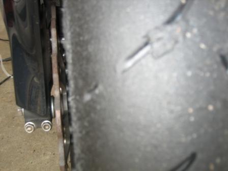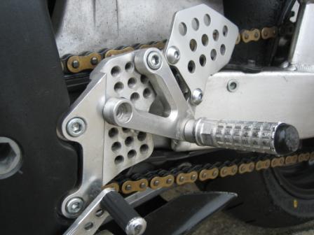 | 10:21 ピットインしたら ピットインして、ステップスタンドを立てようとしたら、ステップがグニャッと。 曲がってしまいました。 見ると、ボルトが1本はずれてステップ位置がずれてしまっています。 走行中にステップが取れたことを思うと・・・・(-_-;) ステップ取れたら、まず落車、転倒しますね。危ない危ない。 前回のレースの時に、ステップが緩んでいたので、プレートを取り外して、増し締めしたときに、プレートのボルトをきちっと締めていなかったみたいです。 走っていて、しっくりしなかったのは、ボルトが1本外れて、ステップ位置が少しずれていたのかも知れません。^^; |
