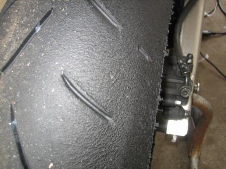 | 11:51 2走行終了後のタイヤ 前回のレースで使ったユーズドで2本走って、これくらい。 |