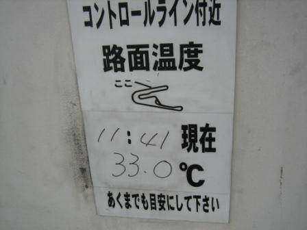 | 11:56 終了後のコンディション 気温25.1℃ 路面温度33.0℃ 気温自体はそれほど高くはありませんでしたが、湿気が高く走っていると汗が噴き出してくるコンディションでした。 7月のレースの時、晴れていたらすっごい暑さになりそうな予感です。 |