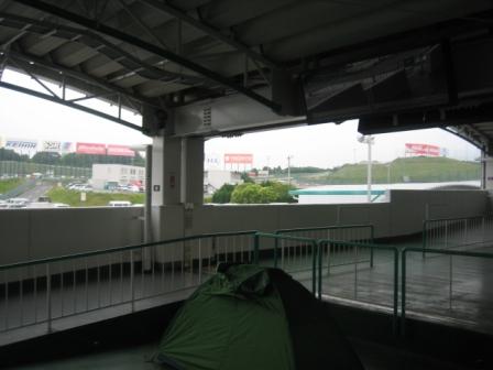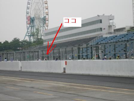 | 8:25 応援中 ピットクルーじゃないエ゛マさん親子はピットの上から応援です。 でも、写真がちっちゃくて良くわからないかな? |