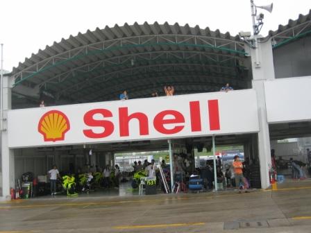 7:43 ピット前で スタート前チェックが終わり、ピット前にマシンを並べる頃には、しっかりと雨が降り始め路面が濡れはじめました。 他のチームもタイヤをレインに交換し始めています。 隣のピットの地元チームもレインタイヤに履き替えているので、ここでレインタイヤに交換します。 スタート進行まで、約15分。 バタバタとタイヤ交換をします。 |