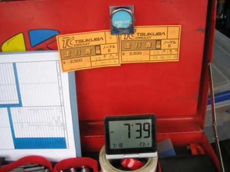 | 7:39 今日の走行は 8:30からと10:00からの両方ともBクラスです。 今日はダンロップ下からMCコーナーそして第2ヘアピンまでの間を集中的に練習します。 と言うのも、6月にオパミンのヘルパーで鈴鹿に行った帰り道トランスポーターの中でオパミンに筑波の走り方についてレクチャーを受けた時わかったのですが、今までMCコーナーの走り方が違ったみたいです。^^; 詳細は丸秘なのでここでは書きません。 (じゃなくて、恥ずかしくてかけません。(汗) |