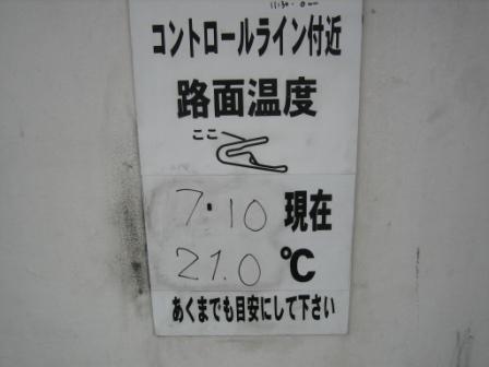 | 8:10 コンディション 気温20.5℃ 路面温度21.0℃ 雨が降り続いていたおかげで、気温と路面温度は、この時期としては低めです。 |