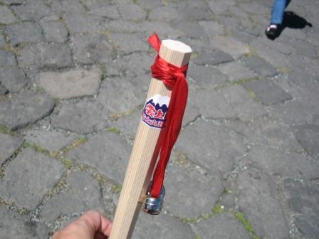 | 10:40 買っちゃった 杖、買っちゃいました。 通常¥1,000のところ、ツアー参加者は特別割引で¥900!(笑) ”金剛杖”と言うそうで、断面は八角形をしています。 この形状はもともと仏教信仰からきているそうです。 自分の場合、人間のパワーウエイトレシオの指針となるBMIが標準値の22を越えており、年ごとに柔軟性が劣化しつつあるヒザの関節に長時間歩き続けるとダメージが結構加わります。 そんなことで、この杖今回はっきり言って結構助かりました。 疲労が20%ぐらい低減された感じです。 |