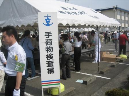 | 9:29 手荷物検査 今日は一般の人が入場可能、過激派なんかが入ってきたら困るので、その前に”手荷物検査”。 |
