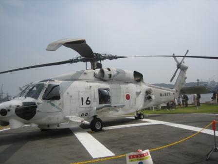 | 9:33 SH-60地上展示 SH-60地上展示、『本邦初公開!』だそうです。 自分自身、自衛隊とか特に興味が無いので、良く、いやいや全然わかりません。 でも、このヘリコプターのメインローター先端の”クニャッ”としているのは、きっとちゃんとした理由があるんだろう。 設計した人に質問したら、きっと1時間くらい説明してくれるはず。 |