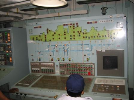 | 10:57 で、隣は 応急監視制御盤と言うものらしい。 攻撃を受けてどこが壊れているか、とかどこに浸水しているかとか、監視しているのかな。 よくわからん。 |