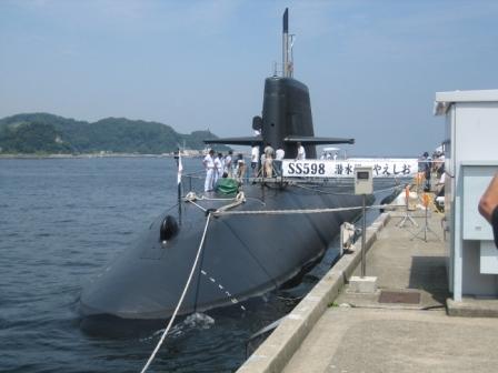 | 12:03 接岸後 接岸後、下船して他の船を見学。 潜水艦も停泊していましたが、これも中を見学するには前もって応募する必要がありました。 しかも、原則小学生以下。 (きっと、機密が漏れると困るからだぁ) |