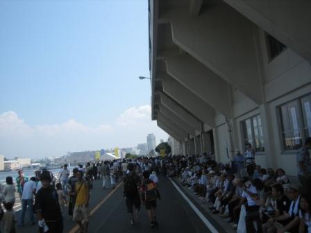 | 12:13 大行列 乗船して、内部を見学しようと思いましたが、ご覧のように順番待ちの大行列。 あきらめました。 |