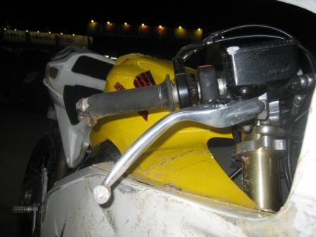 | 22:24 修理箇所の確認終了 修理箇所の確認は終わりました。 あと、組んでいる最中に気がついたんですが(写真は取り忘れました)、ハンドルストッパーが折れて吹っ飛んでました。 これも交換、新品を注文です。 とりあえず、このままでもバイクは走行は可能な状態になりました。 後はパーツがきたら、交換すればOKです。 ただし、人間がまだ修理完了していないので、走行はまだちょっと無理、全治3ヶ月くらいかかるそうです。 |