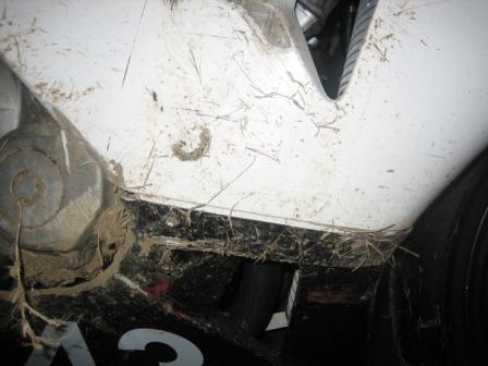 | 18:58 エンジン周辺右側 カウルがかなり削れて穴が開いているところもありますが、とりあえず現状で使用可能。 今回はこのまま使います。 (お金が貯まったら、修理します) |