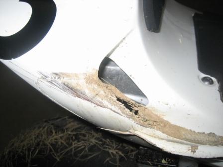 | 18:59 テールカウル テールカウルも削れて穴が開いちゃいましたが、これも修理は後回し、このまま使います。 (FRPの補修キットでも買って自分で修理しますかね) |