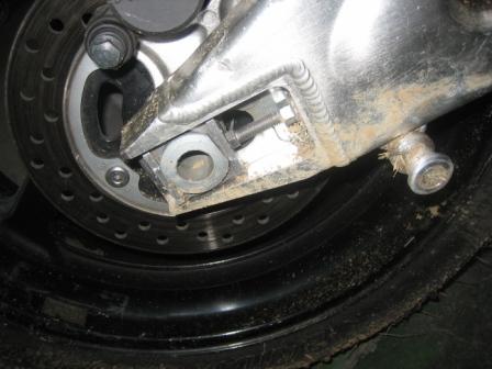 | 18:59 リヤ周り 前回の転倒の時は、スタンドボルトが折れてしまい、とっても不自由しましたが、今回は泥まみれになっただけで大丈夫でした。 |