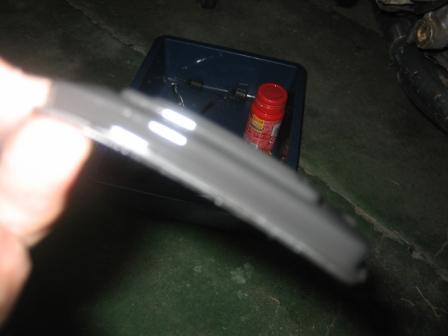 | 21:29 くたびれたダイヤフラム 以前ブレーキフルードを交換したときは、もっとくたびれていたと思ったのですが、それほどでもないですね。 でも、この際ですから交換しちゃいました。 古いダイヤフラムは廃棄。 |
