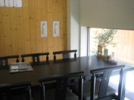 | 12:00 入店 お店に入ると、中はかなり広いです。 店自体4階建くらいのビルで、外も中も小綺麗な建物です。 2階にも客席があるようですが、1階は大きく3つのブロックに分かれていて、それぞれテーブル席と座敷の席がありました。 おそらく、1階だけで120人くらいは入れそうです。 自分はお客さんと一緒にテーブル席へ。 |