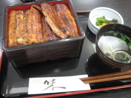 | 12:01 でも 天然うなぎは、さすがにちょっと高すぎ。 自分ら庶民は普通の養殖ものの”上うな重”(1匹半、\2,570)にしました。 (と言っても、昼飯に食べるのは十分に高いんですけどね)(^^;) |
