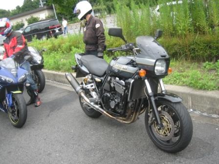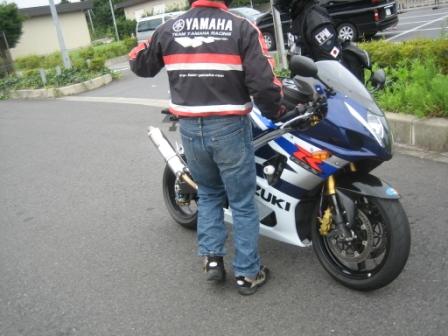 右の写真は回初参加(?たぶん)のGSX−R K4に乗る脇本さん。 右下がGPZ900の三谷さん、と下がZRX1100の揚野さんです。 それに、主催のアイスエイジさん、オパミン、Ryo@Mさん、R1の山口さん、VFRの宮本さんと自分の9台です。 |