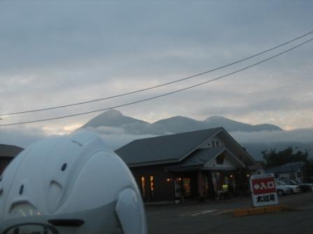 ガソリンスタンドで休憩していると、雲が流れて会津磐梯山が顔を見せました。
