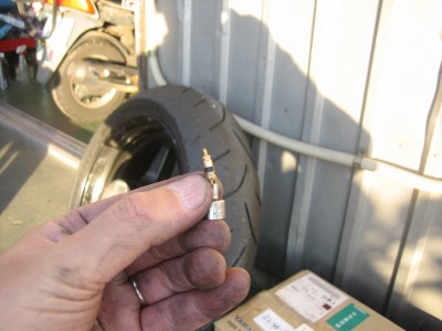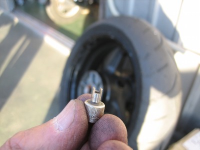 16:58 虫を取り付け エアーが十分に入って、ビートが出たら、エアーホースを外して、すかさず虫を取り付けます。 虫を取り付け終わったら、バルブに つば をつけてエアーの漏れがないか確認します。 (虫の部分に埃でも挟まると、微妙にエアーが漏れて次の日にはエアーがスッカラカンとか) |