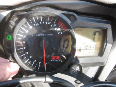 9:07 自宅を出発 行き先は山中湖&箱根方面。 一人で、ぷらっと出かけるお決まりのコースのひとつで、9時に出発すれば、3時過ぎには帰ってこられます。 さっそく自宅を出発することにします。 が、後で写真を見たら、日光が入ってしまい距離計が読めません。 (24,19×km (×_×) |