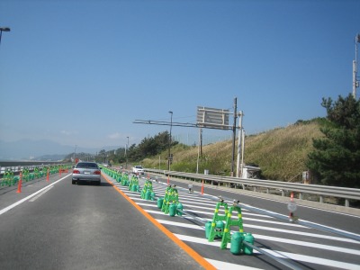 10:10 対面通行 この道路の損害を受けた箇所は、料金所手前まで続き、料金所手前で再び片側2車線に戻ります。 |
