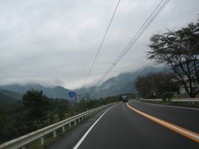 11:45 日光の市街地を抜け 日光東照宮の前の通過して、国道120号線でいろは坂を上り中禅寺湖を目指します。 中禅寺湖は目の前に広がる山の上にあります。 山の上は雲に覆われており、雨にあたるのは必至です。 |