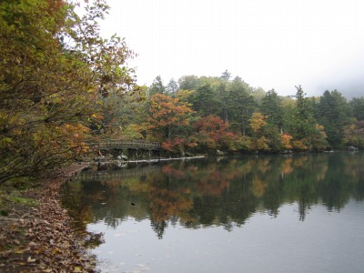 14:26 湯ノ湖 金精道路でトンネルの手前まで行き、湯ノ湖まで引き返してきました。 湯ノ湖は奥日光にあり、標高は約1,475mです。 今、紅葉が一番きれいなのは、標高1,350m〜1,500mの、竜頭の滝から湯ノ湖にかけてのあたりの様です。 湯ノ湖一帯は見事に紅葉していました。 天候は曇りがちですが、逆に時々やってくる雲が神秘的な雰囲気を醸し出していて、これはこれでいいものだと思いました。 |
