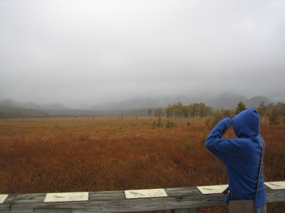 14:59 戦場ヶ原 次に湯ノ湖から中禅寺湖方面に少し下って戦場ヶ原まできました。 戦場ヶ原のここの標高は1,394m。 晴れていれば、眼前にそびえ立つ男体山を見ることができますが、今日はそれを望むことはできません。 しかし、自分でもいままで見たことがなかったのですが、草原が真っ赤に燃えるような 草紅葉 を見ることができました。 いやぁ、大自然の驚異ですね。 |