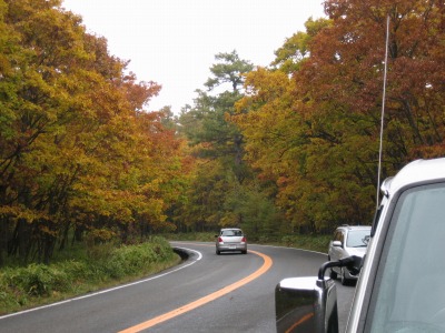 15:22 竜頭の滝へ 戦場ヶ原を後にし、竜頭の滝に向かいます。 途中、道路の両脇には紅葉した木々が覆い被さってきます。 いやいや、お見事! |