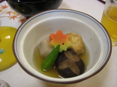 18:30 炊き合わせ 日光名物の湯葉がこっちにも入っていました。 上品な味付けで、日本食の王道ですね。 |
