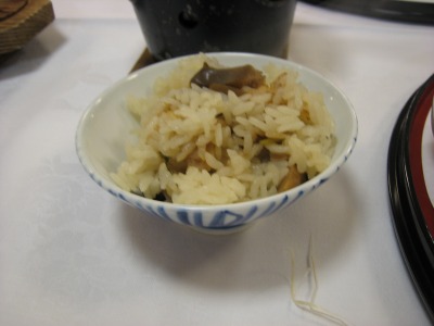 18:47 きのこの釜飯 残念ながら、松茸ではありません。 けど、十分美味しい。秋はきのこの季節ですね。 その他にお椀と途中に手打ち蕎麦が出てきます。 十分お腹いっぱいになりました。 美味しゅうございました。 |