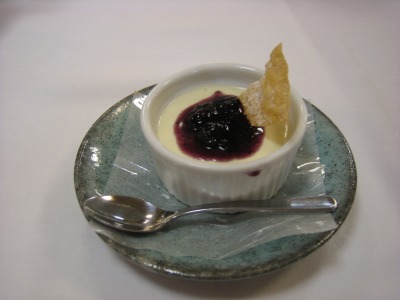 19:05 デザート 最後のデザートは、豆乳チーズ寄せ。 ここは和食の料理人らしく、和の食材を中心に料理が造られていました。 このデザートもさっぱりして美味しゅうございました。○ |