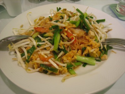 11:22 パッタイ 上の写真と時間が前後しますが、Central百貨店で朝食兼昼食。 食べたのは”パッタイ”、タイの焼きそばです。 麺は米から作った、中太麺。 味付けは基本的に塩味、少しナンプラーが入っているかな。 干しエビなどが入っていて、クセはなく美味しい。 |
