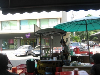 旅行の手配が終わった後、旅行会社の前に出ていた屋台で、ちょっと遅い昼食。