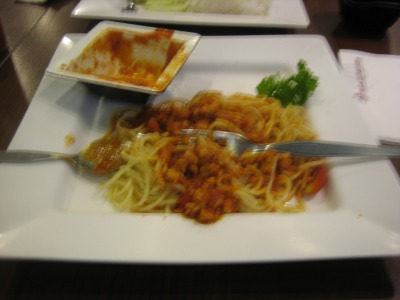 飛行機は搭乗時間が短いため機内で夕食は出ないでしょうから、さっきお昼を食べたばかりですが、軽く夕食を食べます。