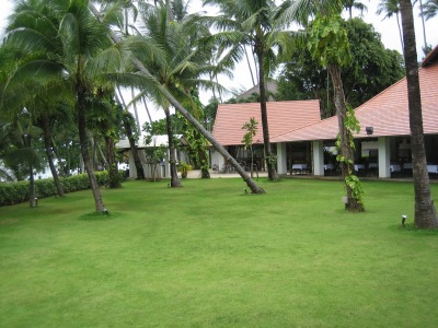 レストランからは緑が映える芝生と椰子の木が植わる中庭を見ることができます。