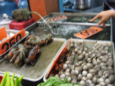 店頭もしくは店内に海鮮が並べられていて、お客は好きな素材を選んで調理してもらう方法です。