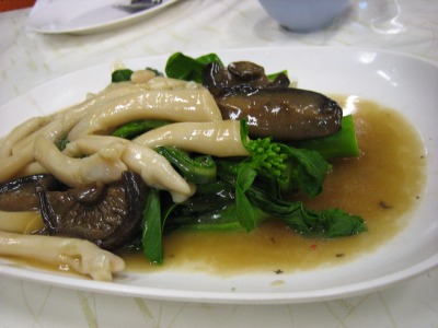 椎茸を青菜となんかの貝の炒め物。(なんかの貝が問題なんですけどね)