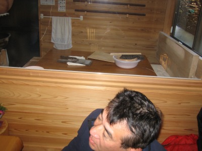 14:47 入店 さっそくお店に入ることにしました。 今日は自分たちで蕎麦が品切れだったようで、ラッキーでした。 民家の一部を店舗にしたような店内に入ると、左右に座敷があり、自分たちは奥になる右側の座敷に上がりました。 座敷の奥にはご覧のように打ち場がありました。 |