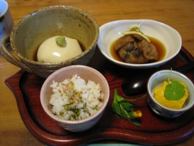 15:07 小鉢が先に お蕎麦の先にまず小鉢が出てきました。 左上から、葛豆腐、右上が小鉢で”きぬかつぎ”で作った・・・忘れた。 左下が、ご飯、そして右下が”にんじんのムース”です。 葛豆腐、小鉢とも出汁が日本料理の精糖は秀逸、美味しいです。 にんじんのムースは軽く甘い味が付けてあり、食事中のアクセントとしていいですね。 これも手間がかかるんでしょうね。 美味しいです。 |