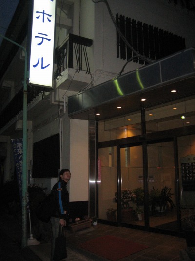 17:16 宿に到着 アンコウ鍋ツアーのメイン、宿に到着しました。 宿の名前は『藤屋ホテル』 とっても、ベタな名前です。(笑) 今回は”楽天トラベル”で見つけて予約しました。 温泉じゃないのが、ちょっと残念ですが、なるべく出費を抑えた上で、『アンコウづくし』 お一人様、¥14,000でございます。 寒いので、そそくさと中に入ります。 |