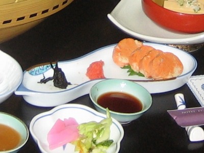 18:50 料理が来ました(^o^) 夕食の7時前になって、部屋に夕食が運ばれてきました。 まずは・・・・聞き忘れましたが、なんか味が付いた豆腐。 印象があまり残っていません。(^_^;) |