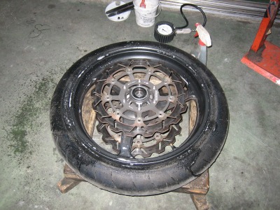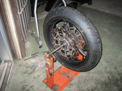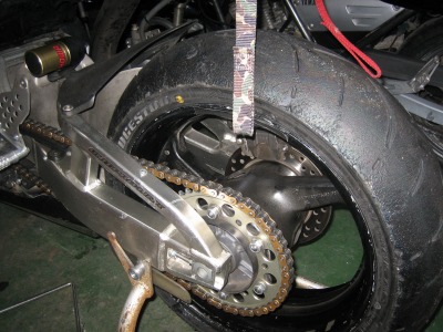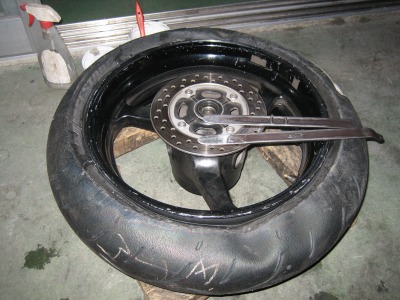 20:31 リヤは完了 リヤのスイングアームやスプロケット、チェーンを掃除したりして、結構時間がかかりましたが、リヤタイヤの交換は終了。 装着したタイヤはTYPE3。ミディアムに相当するタイヤですね。 |