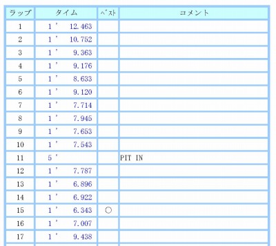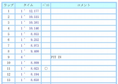 11:29 コンディション 練習終了後のコンディション。 気温13℃ 路面温度は10:00の時点で14.6℃でした。 あと、10℃温度が上がるとコンディション的にはベストですね。 |