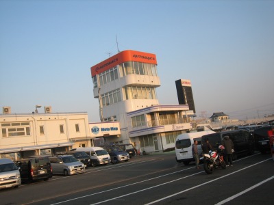 6:55 筑波サーキットに到着 途中、コンビニに寄って朝食を食べ、筑波サーキットに到着しました。 やっぱ、サーキットの雰囲気はいいなぁ。(^^) でも、寒ぅ。 今日は久しぶりの走行になるので、まずは慣熟走行です。 |
