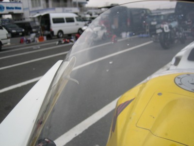 11:48 雨が 練習が終わってバイクを片付けていると、スクリーンに雨がポツポツと落ちてきました。 予約が取れれば、B3の練習枠も走りたかったんですが、取らなくて(取れなくて)正解だった様です。 |