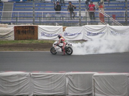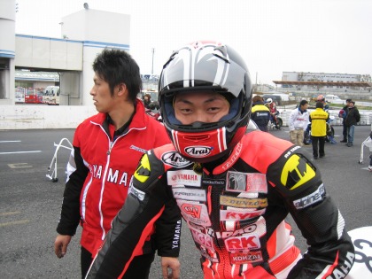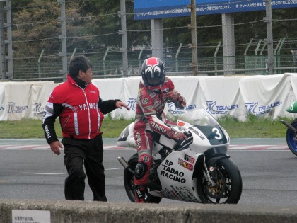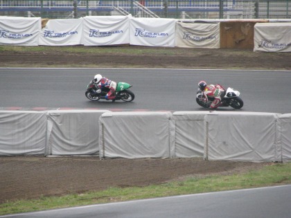 15:55 プレッシャーそれとも オパミンには光旗選手が2位フィニッシュだったのでイイ刺激&プレッシャーがかかります。 天候はGP250のレースと同じ様に、天候は曇り、路面はライン上はドライ、その他のところは濡れている状態です。 また、レースの途中で雨が降り出しそうな雲行きです。 ただ、オパミンは雨は苦手ではないので、この時点ではちょっと期待しています。 |